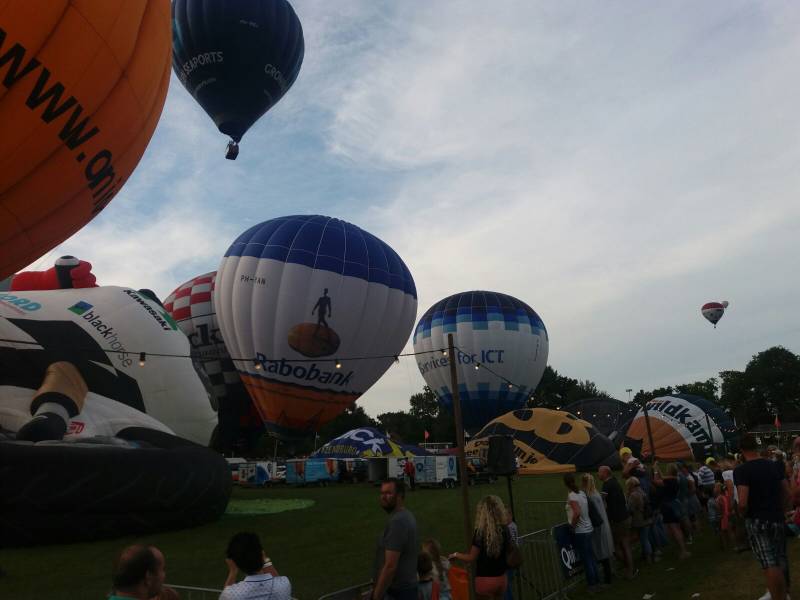 | Na het opstijgen op en om het veld wederom diverse activiteiten, zoals rondkijken en rondlopen in een heuse ballon, demonstraties met prachtige modelballonnen en nog veel meer. | ||
